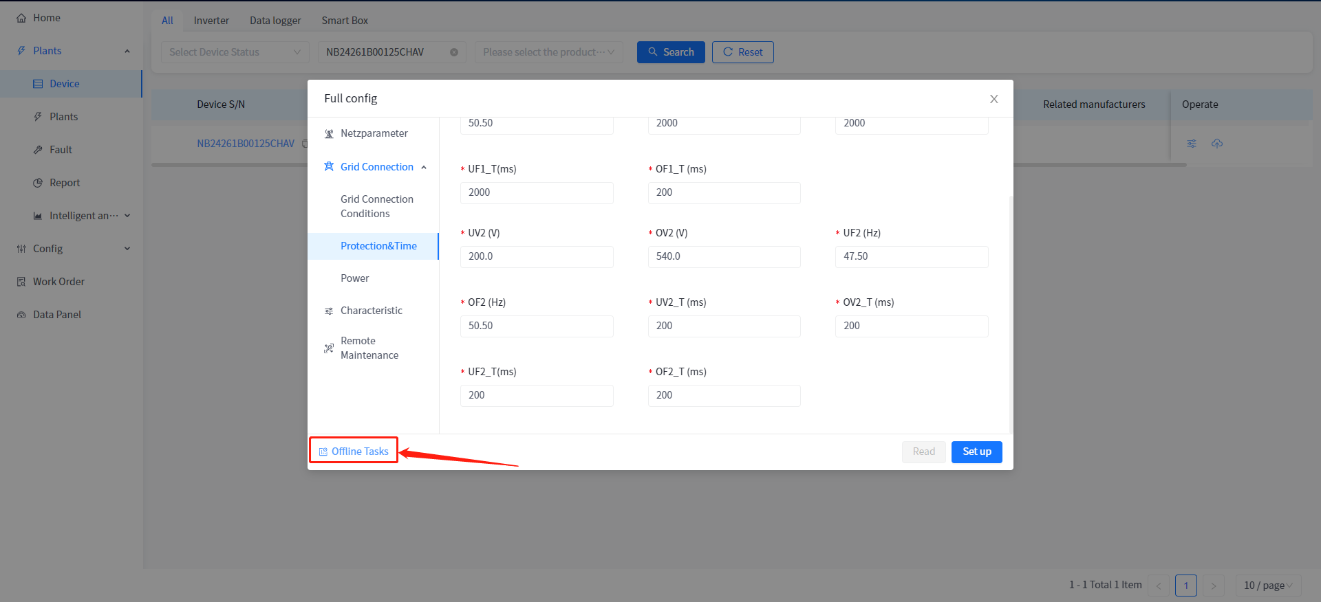 - After clicking the settings button, the device will create an offline task. When the device connects to the service again, the platform will issue the offline task to the device at a certain frequency.