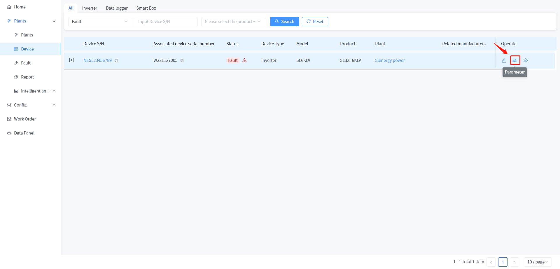 The system supports the operation of reading, setting and self-checking of equipment working parameters (only some models of equipment are supported) in the plant-equipment management.