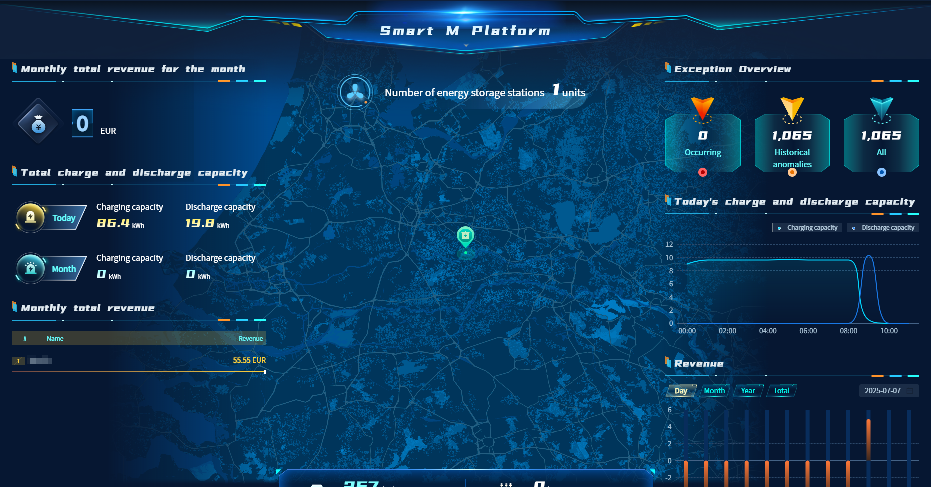 In order to facilitate your observation of the working conditions of industrial and commercial storage power stations and enable you to have a clearer understanding of the working data of each power station, this system has designed and developed a unique large screen display specifically for users of industrial and commercial storage power stations. On this page, the system displays some statistical data unique to industrial and commercial storage power stations. Enable you to quickly access the power station data you are looking for.