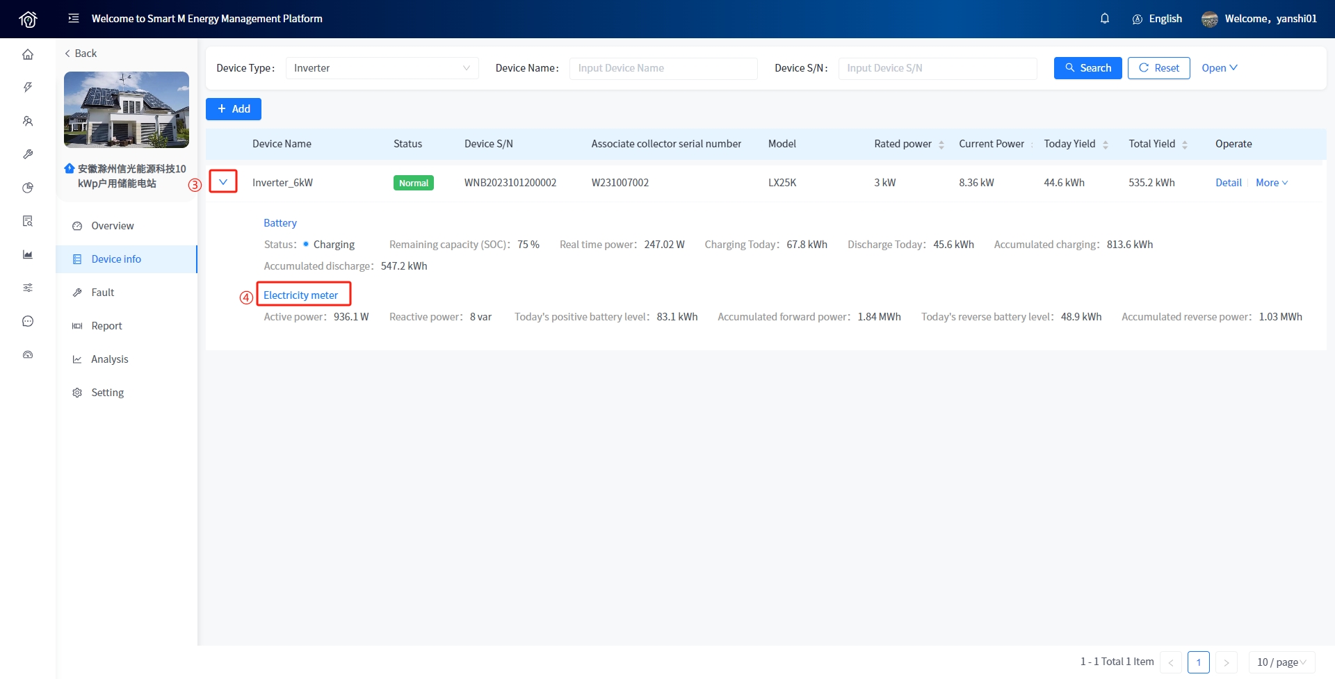 Smart M Support you to view the energy storage and power generation equipment under the energy storage inverter.