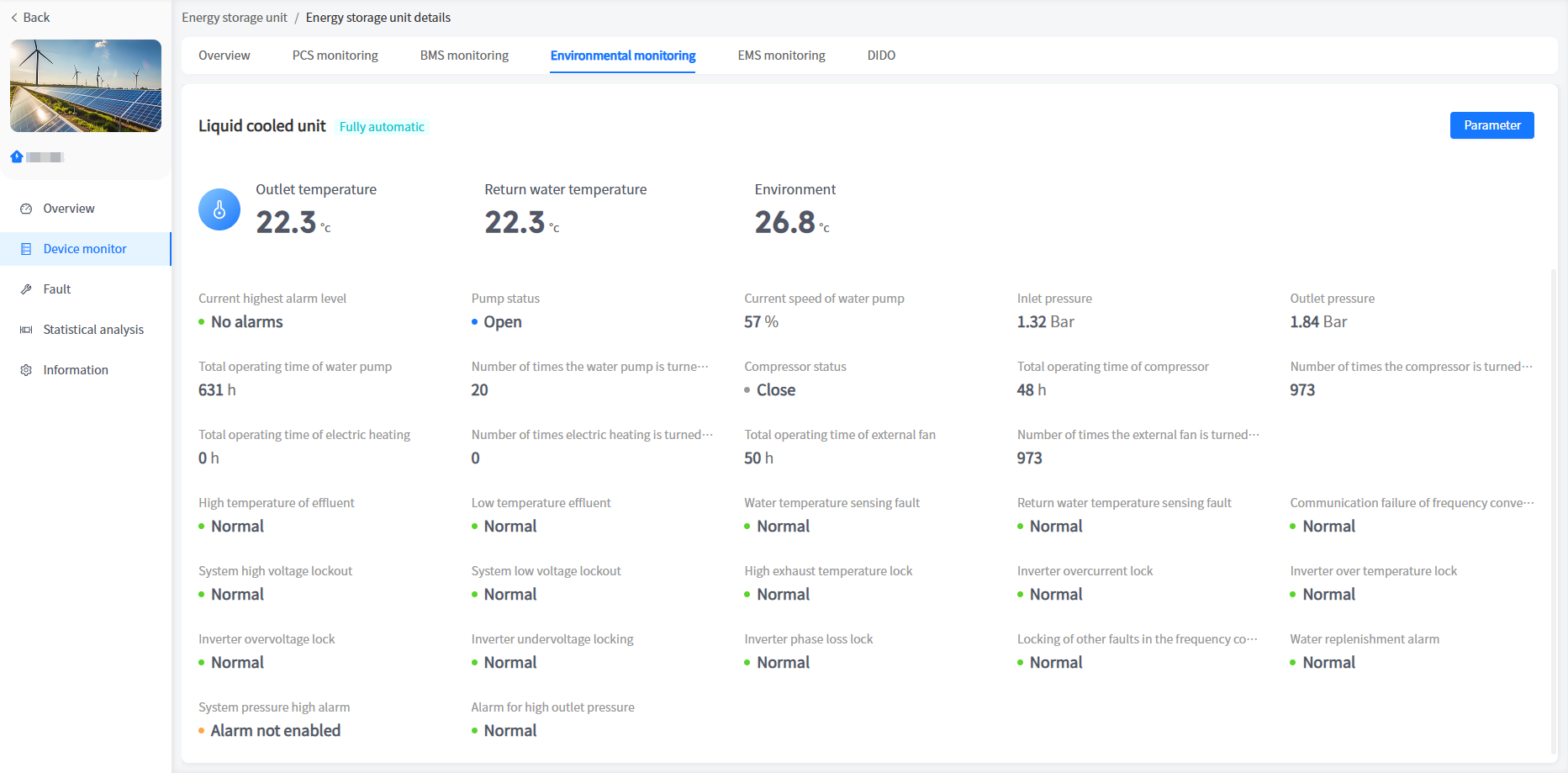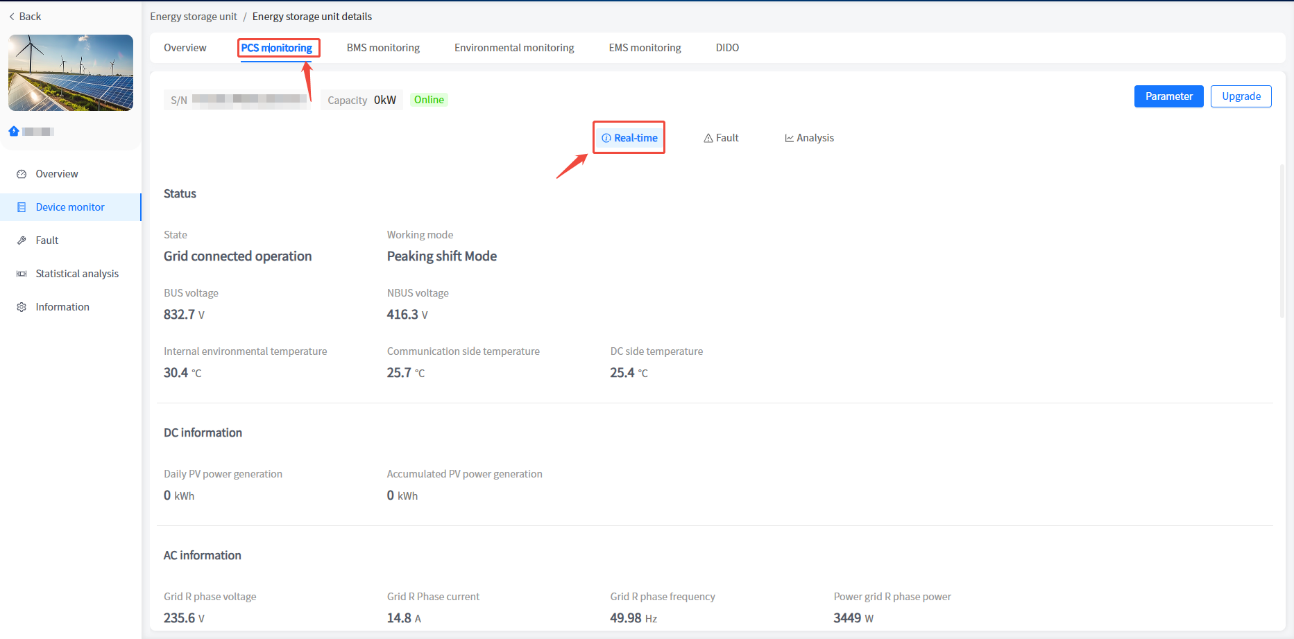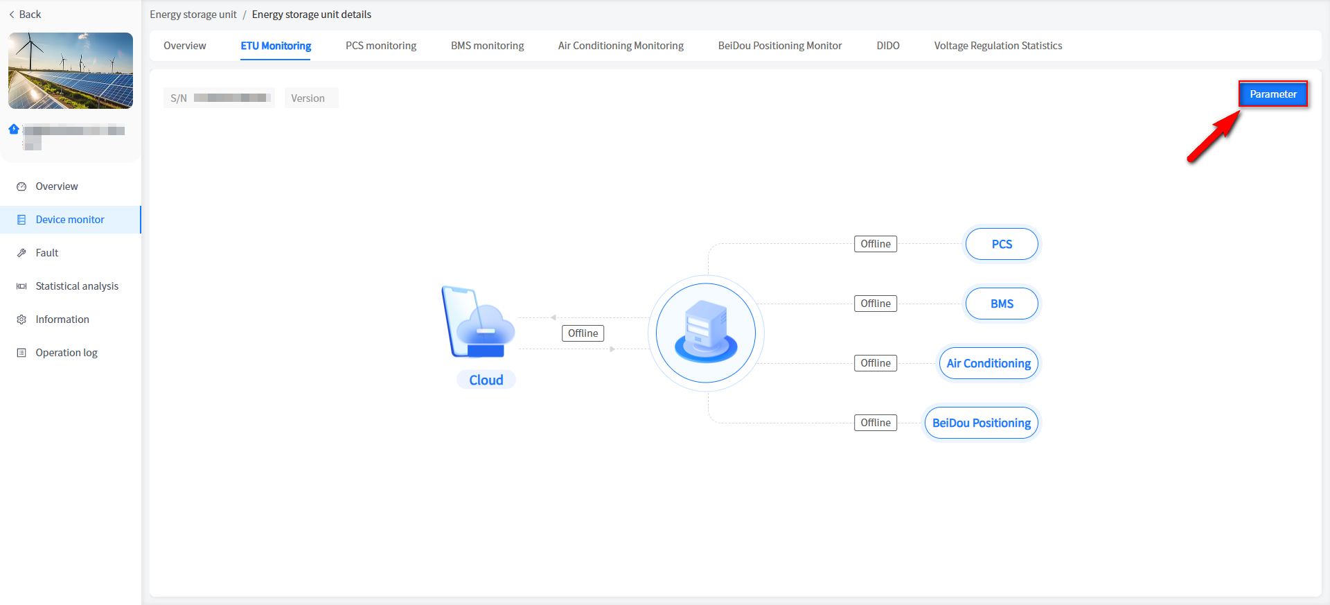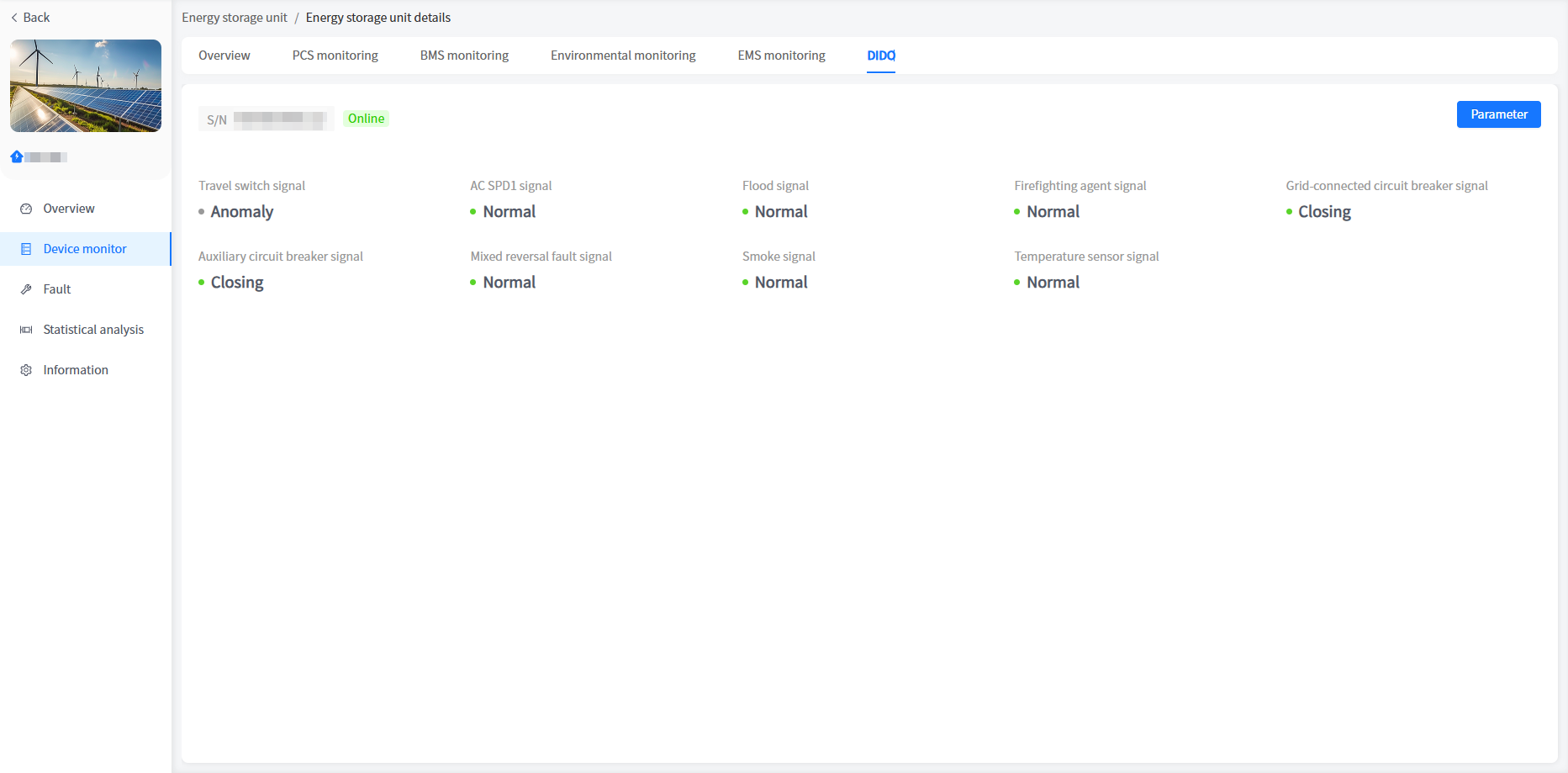 The system has added a cabinet display for energy storage units/voltage regulation units in industrial and commercial storage type power stations. You can view the basic information of your cabinet here.