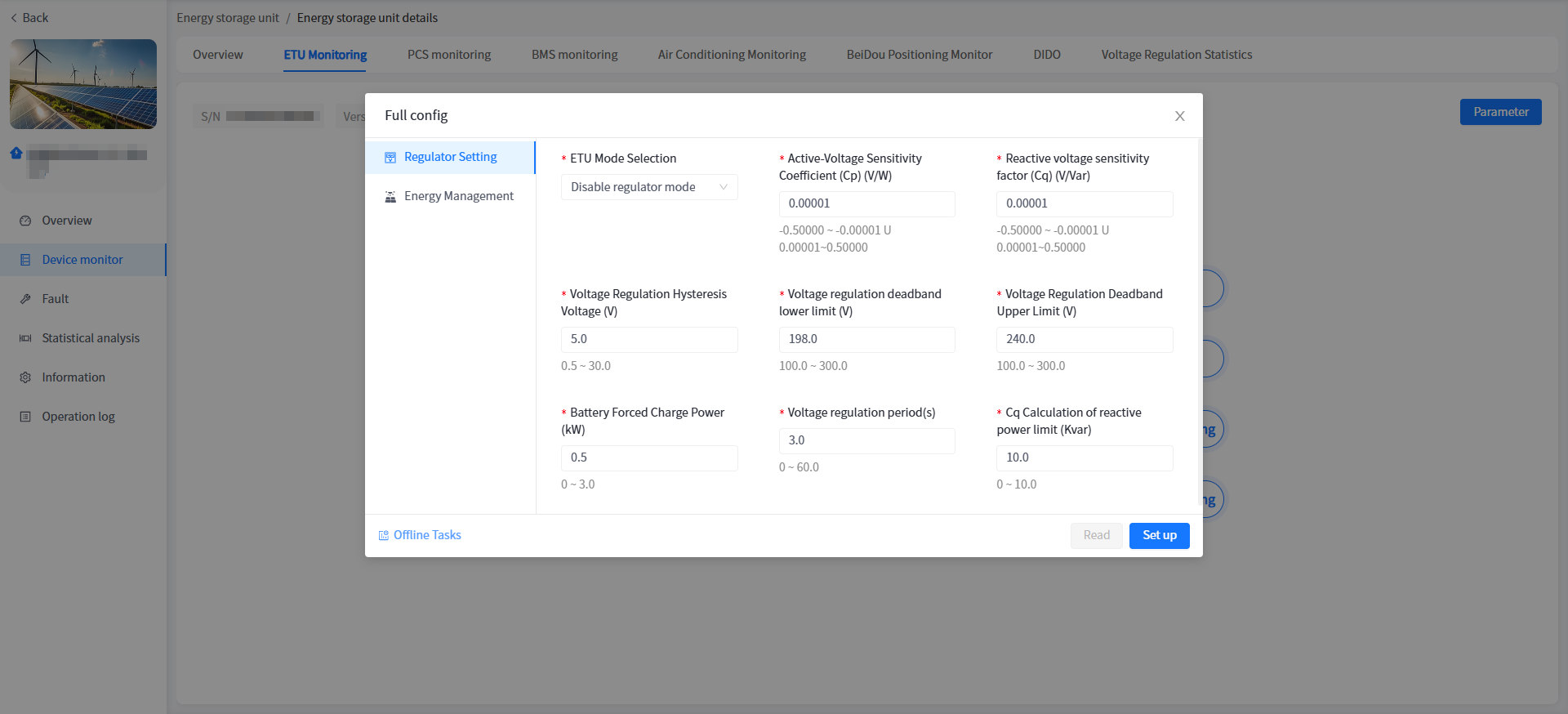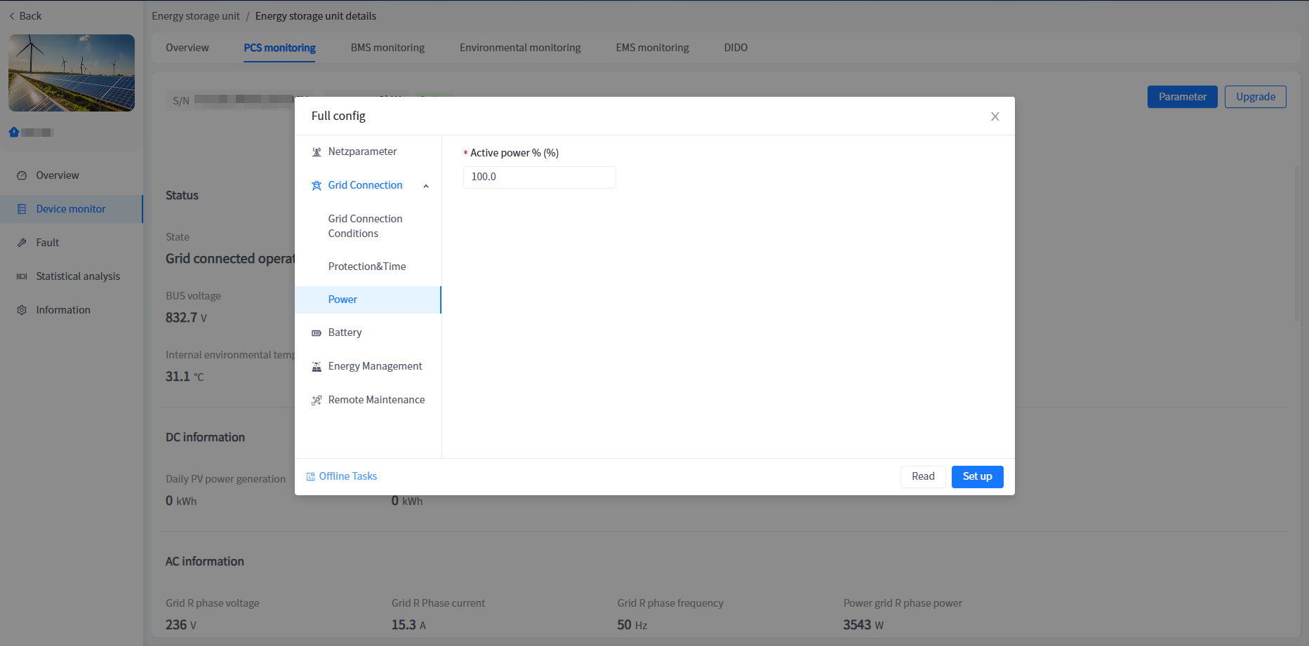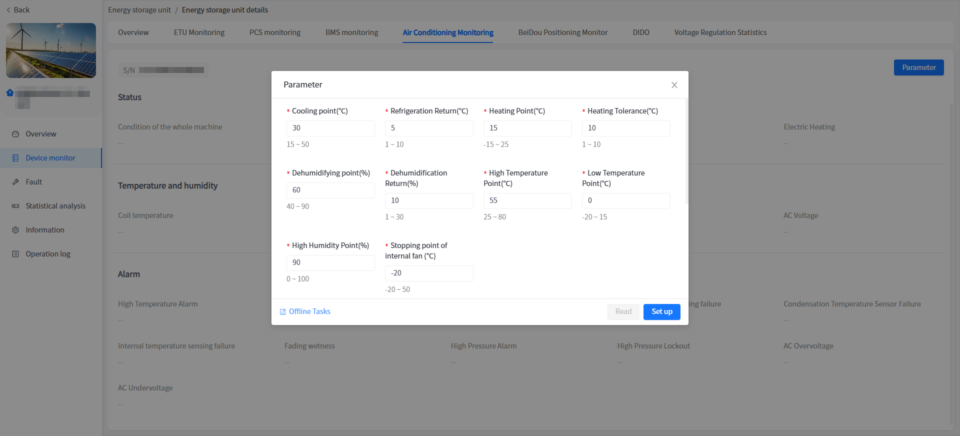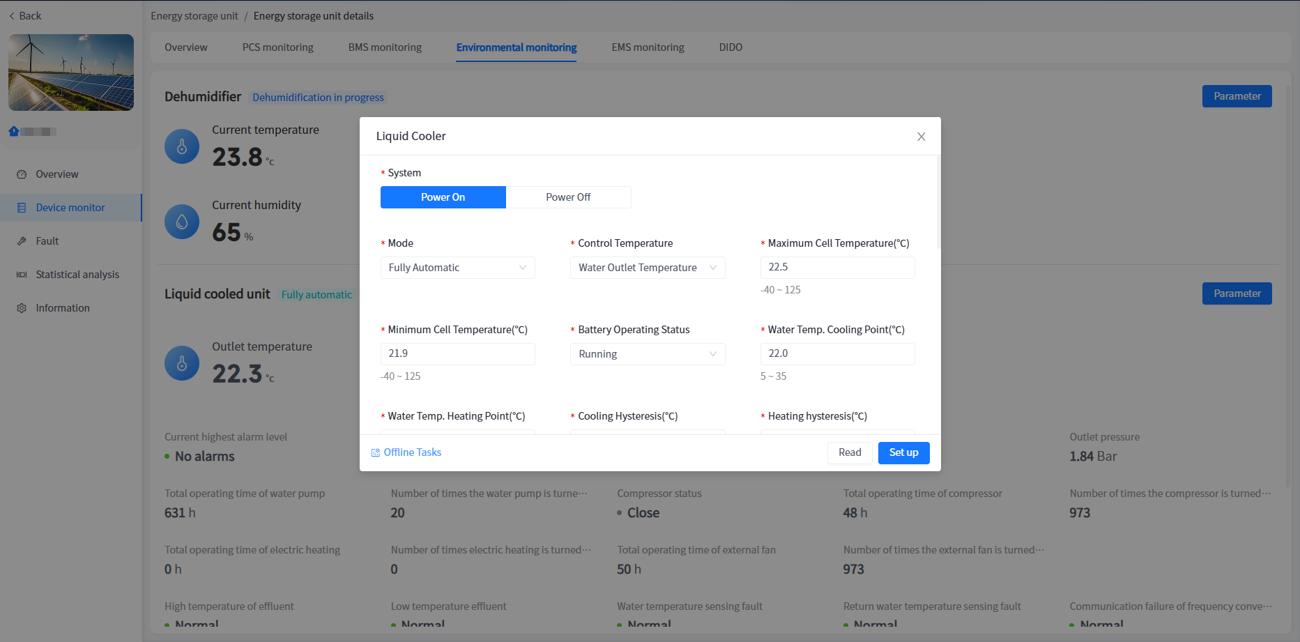 The system has added a cabinet display for energy storage units/voltage regulation units in industrial and commercial storage type power stations. You can view the basic information of your cabinet here.