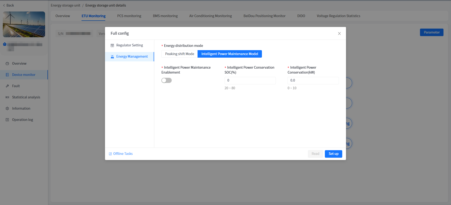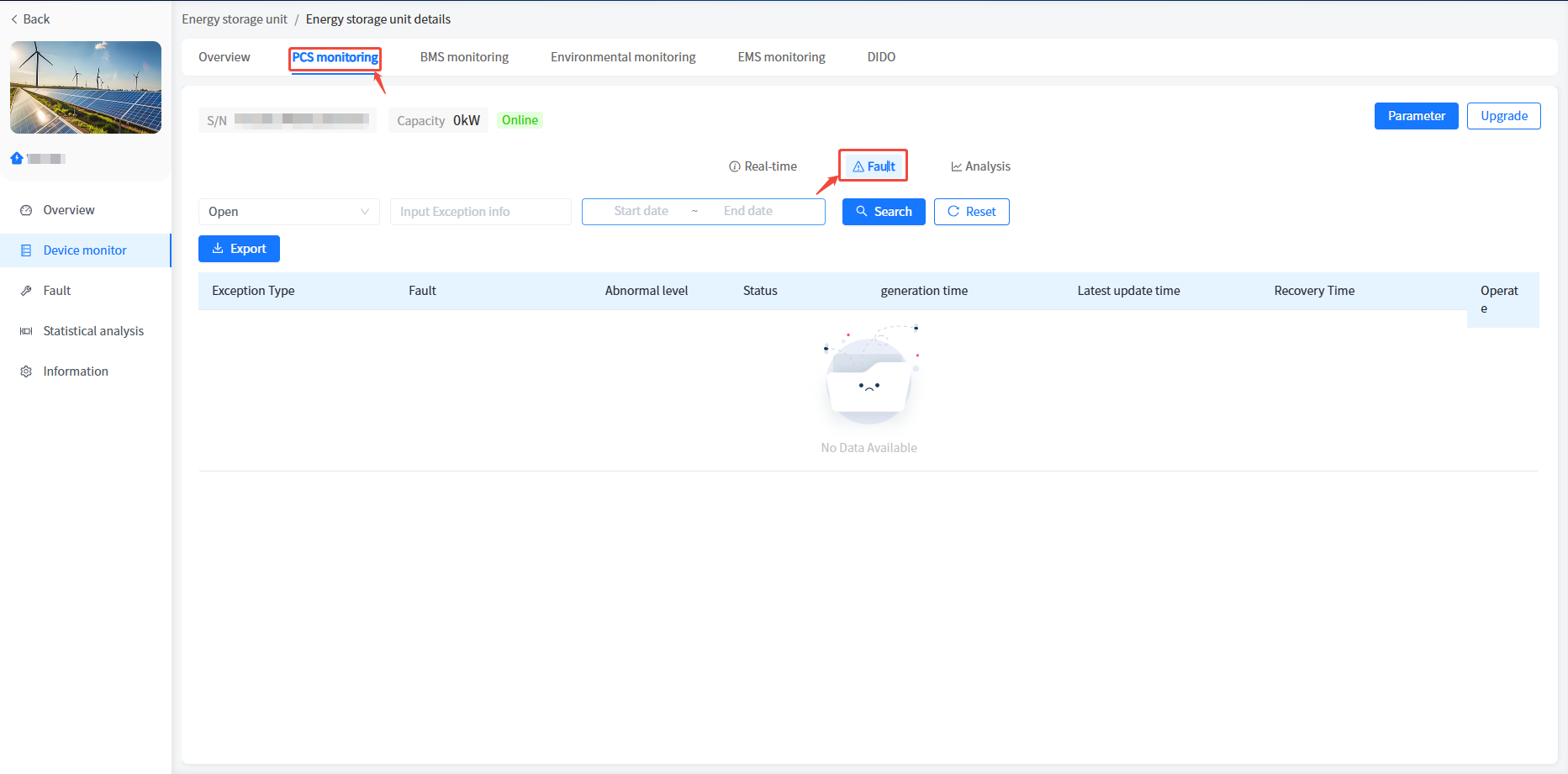 ② Click on [Device Monitoring] on the left to enter the list of energy storage unit devices.