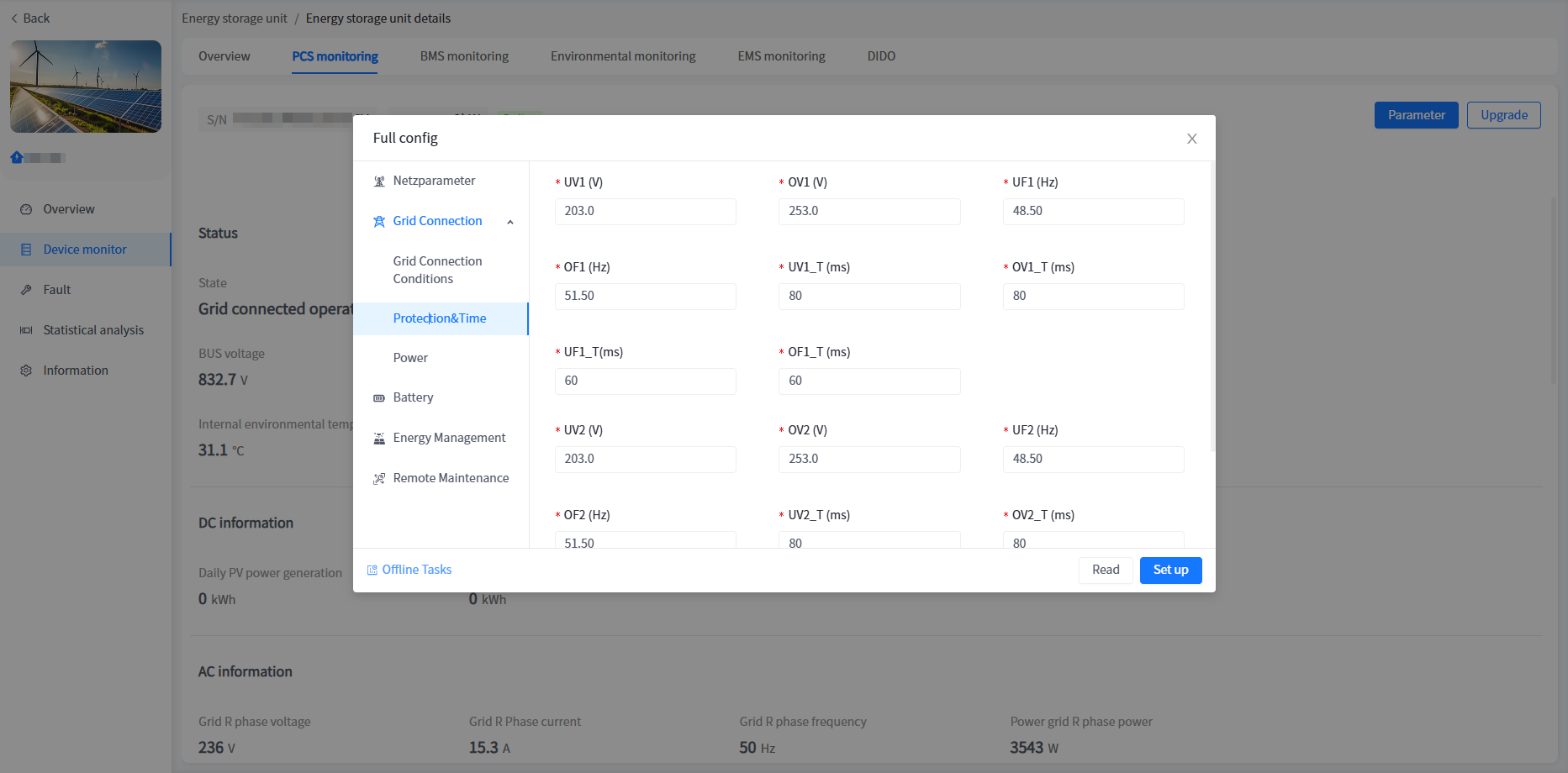 | laws and regulations | After setting regulations, relevant information such as grid connection parameters, protection&time, etc. will be automatically modified to the corresponding regulatory settings. | |
