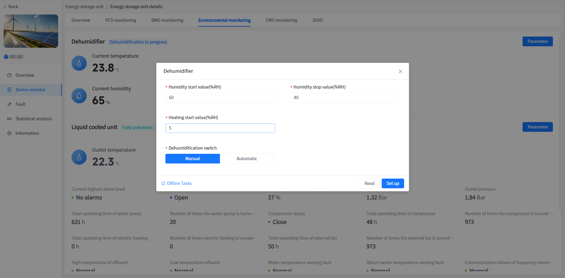 The system displays the basic operating information of the dehumidifier on the environmental monitoring page, which you can view on this page.