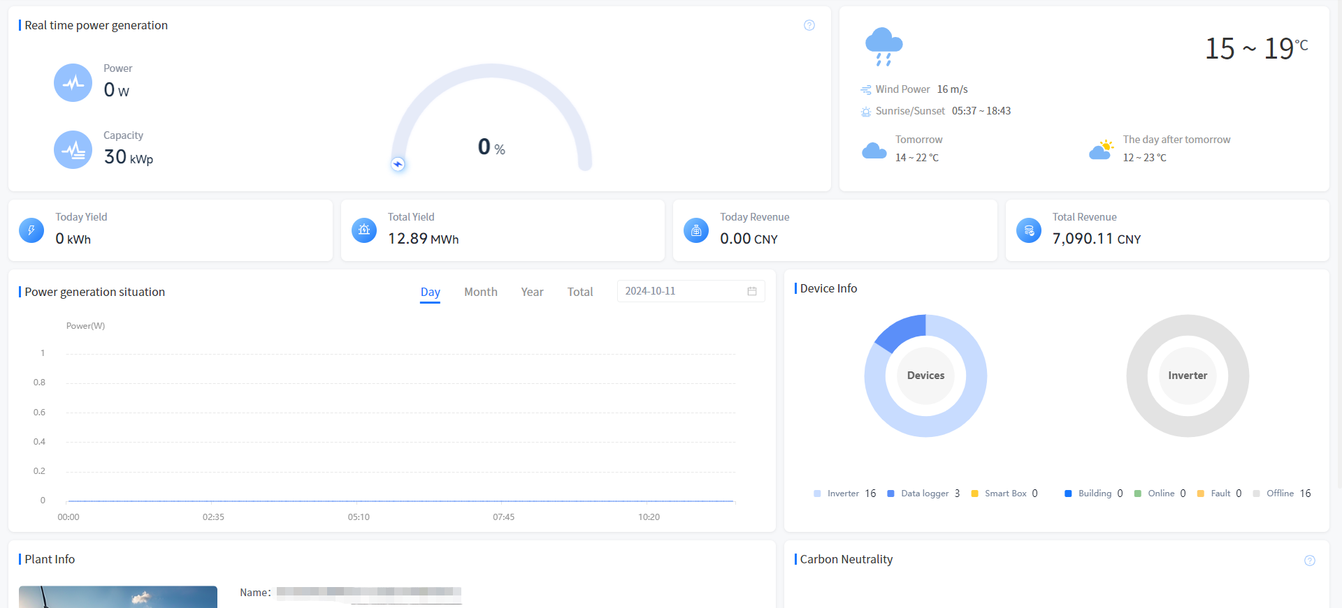 [Today Revenue]Show the generation revenue of your plant today. The calculation formula is: Electricity price set when the plant is created * current generation.