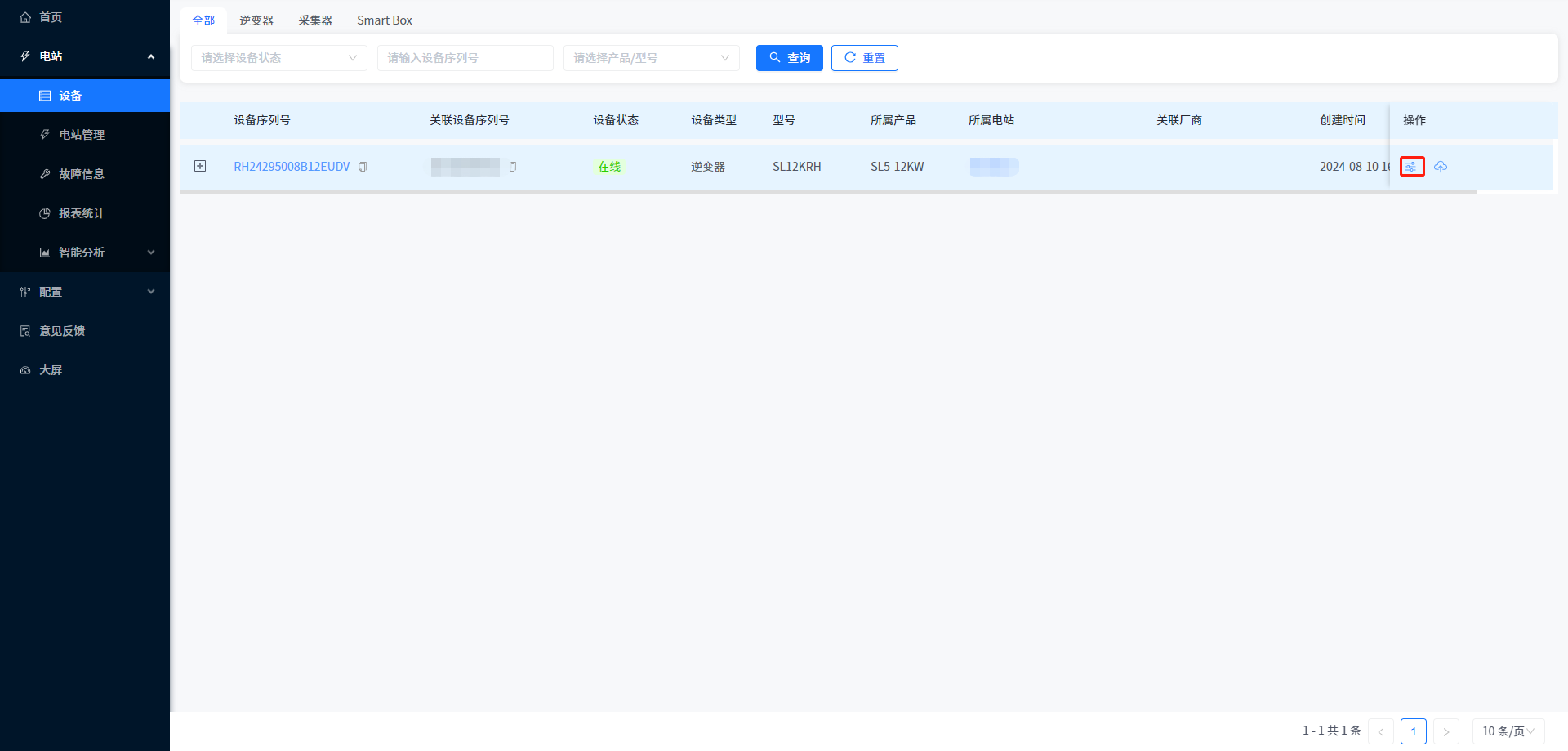 ① 点击电站-设备管理进入设备列表页面。