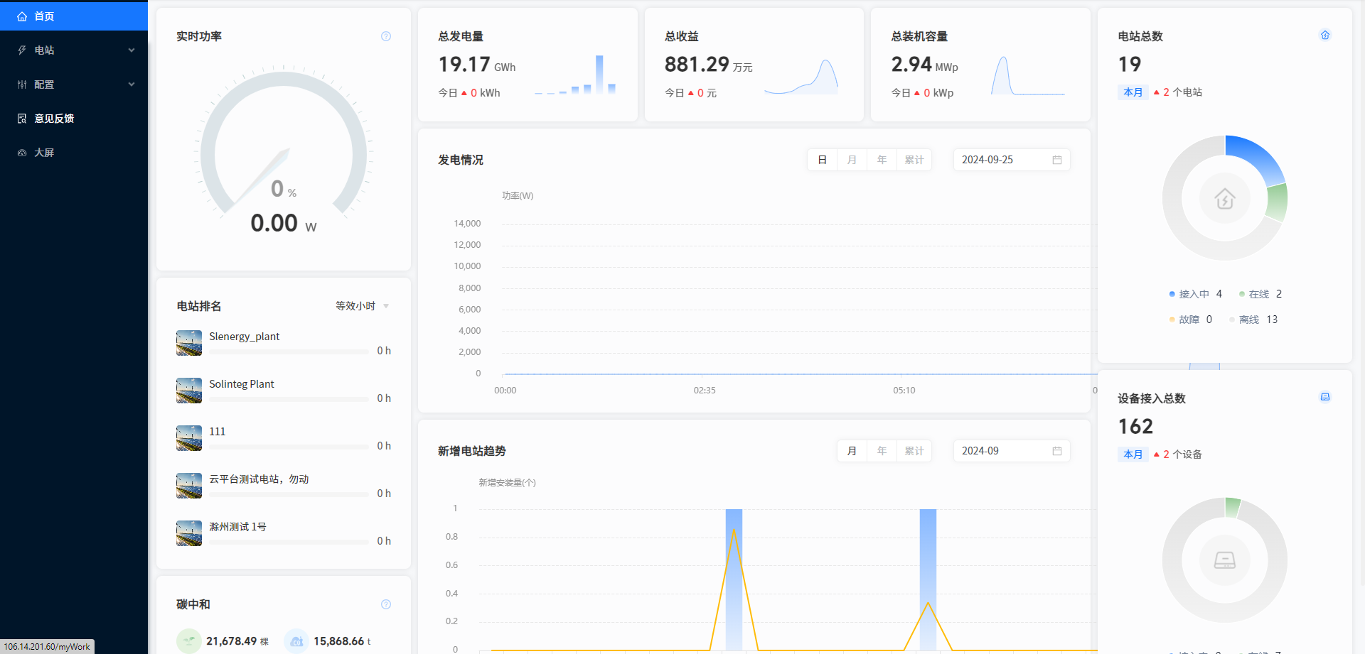 [今日装机容量] 展示您名下今日新装机电站的装机容量之和。
