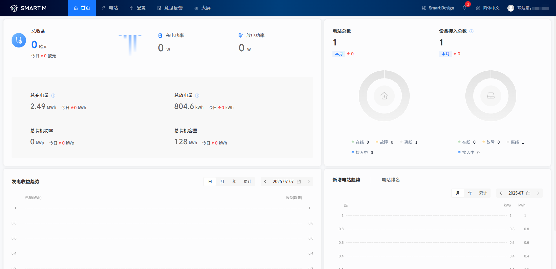 [装机总容量]展示您名下所有电站的额定功率之和。