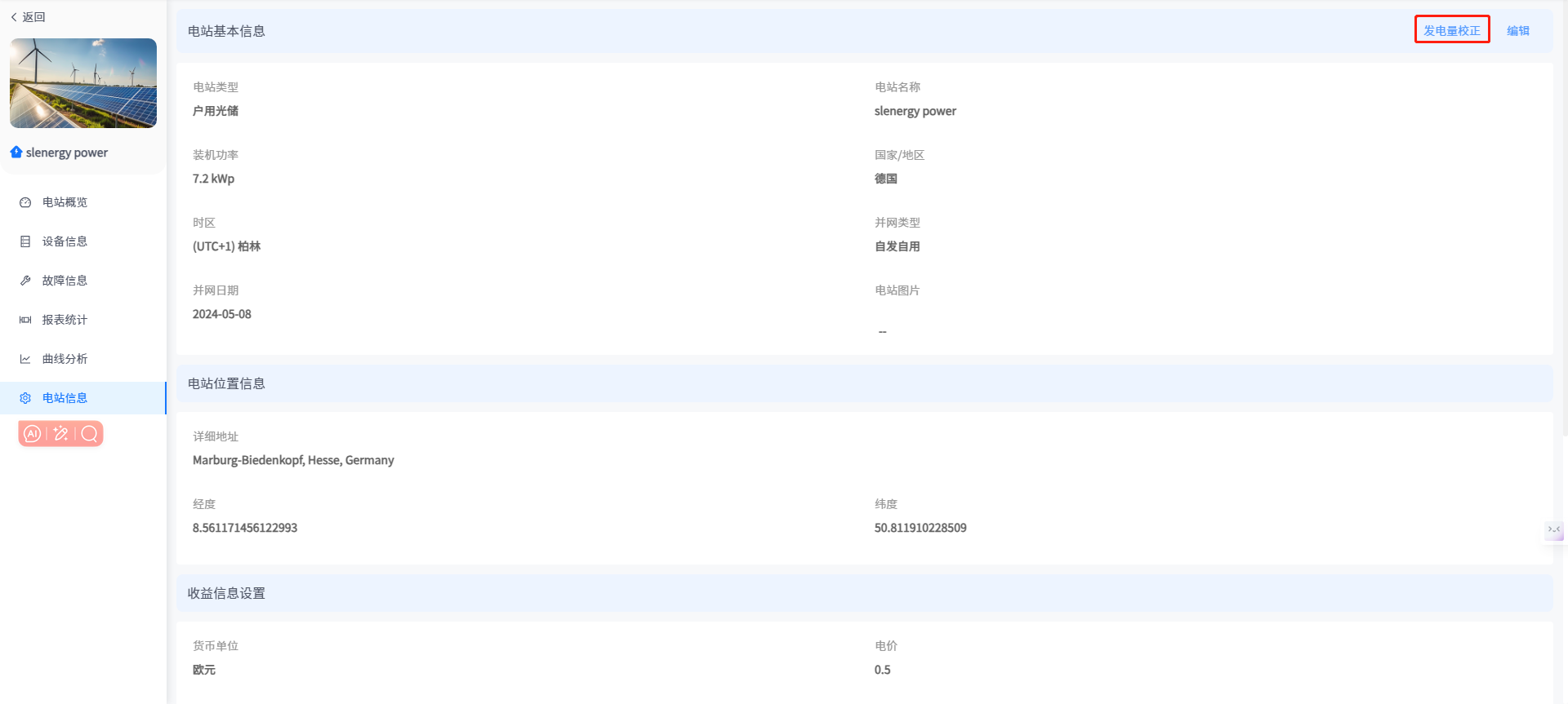③ 点击右上角[编辑]按钮,进入电站信息编辑页面
