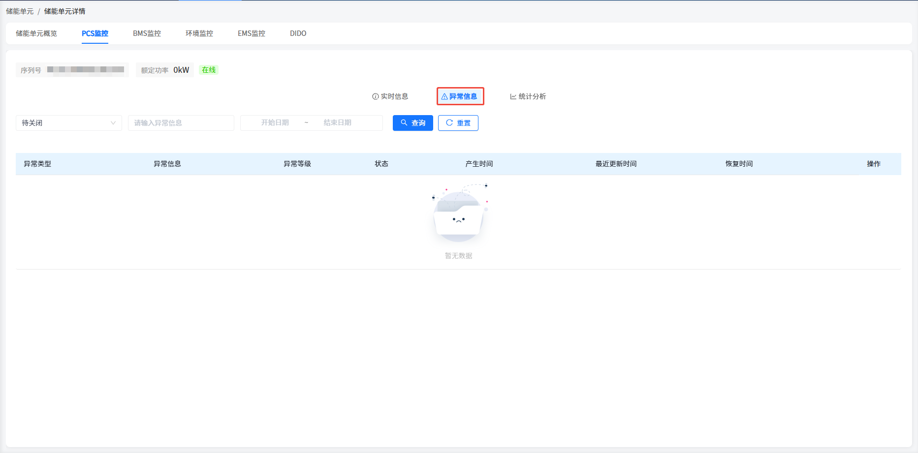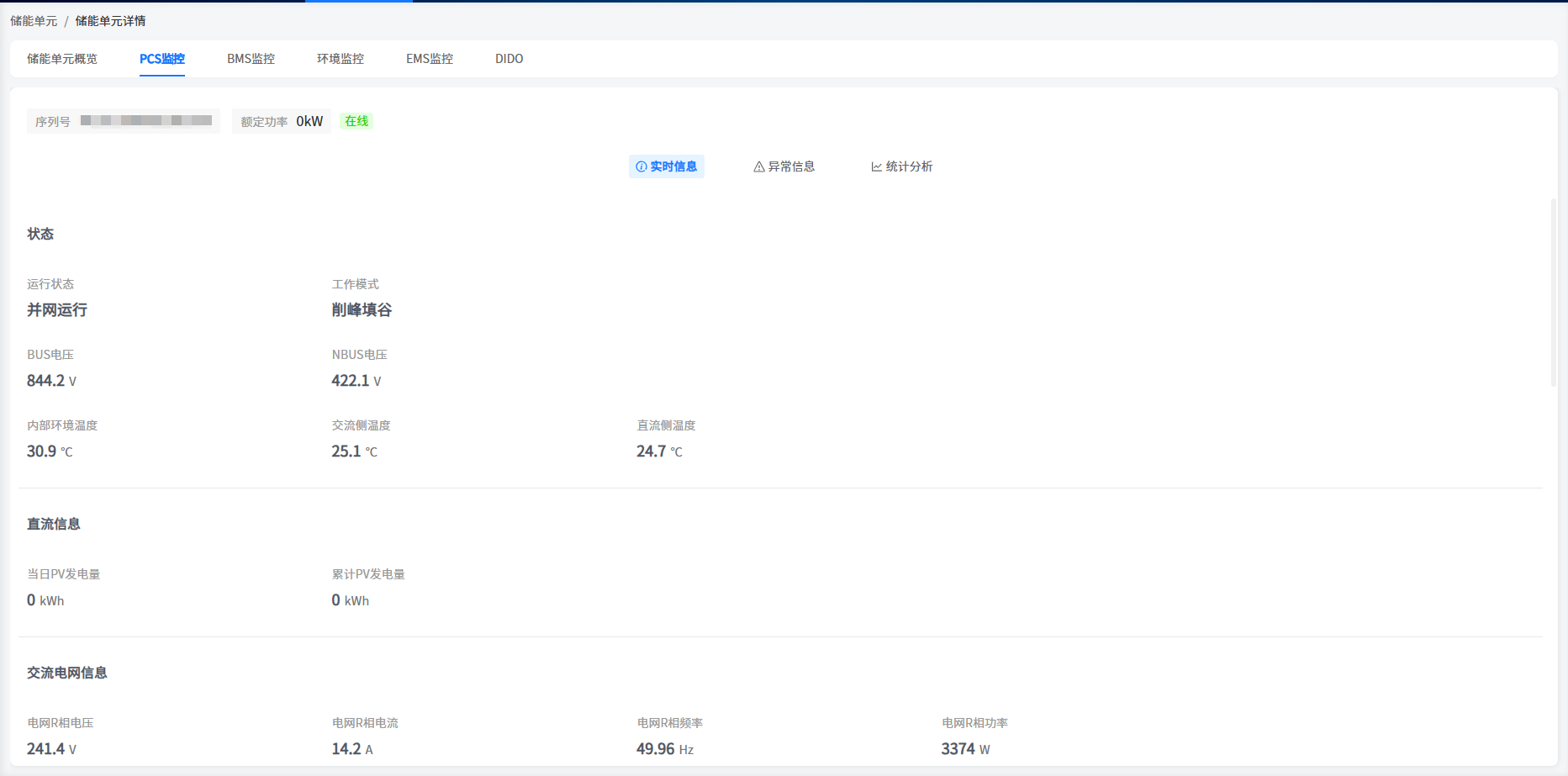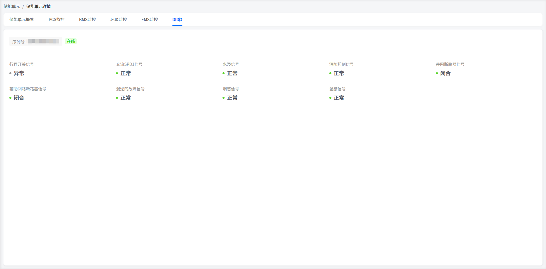 系统在工商储类型电站中增加了储能单元/调压单元的机柜显示处。您可以在这里查看到您的机柜基本信息。